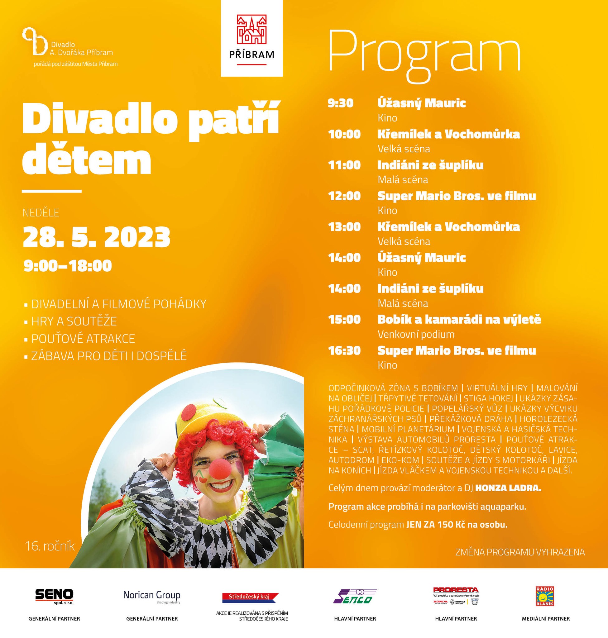 Divadlo A. Dvořáka Příbram připravuje již šestnáctým rokem akci „Divadlo patří dětem“, která se koná v neděli 28. 5. 2023.