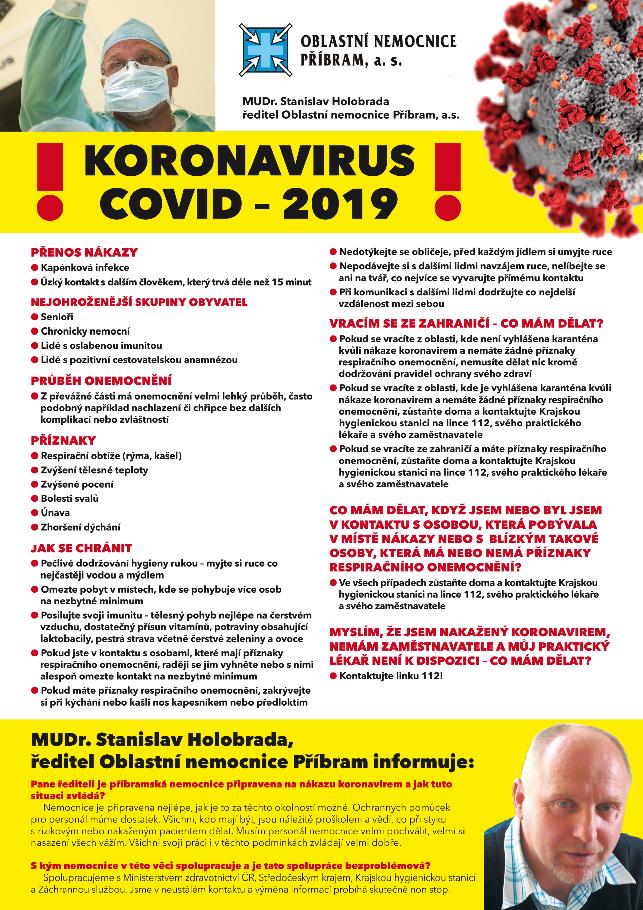 Informace Oblastní nemocnice Příbram ke koronaviru