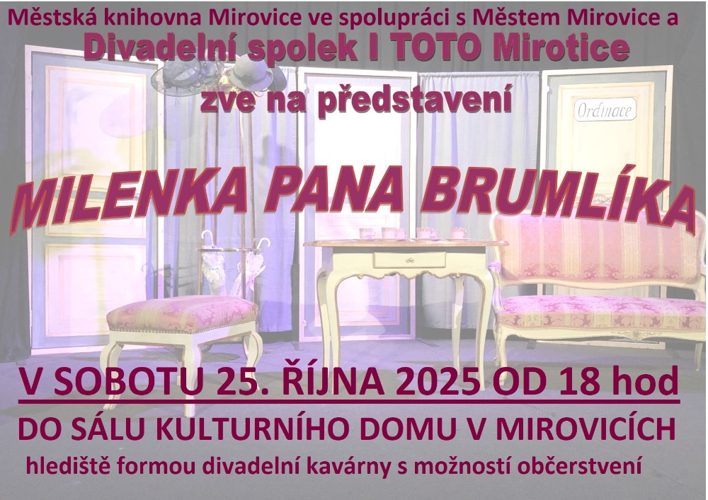 KD Mirovice, 25.10.2025 od 18:00 hodin, představení Milenka pana Brumlíka